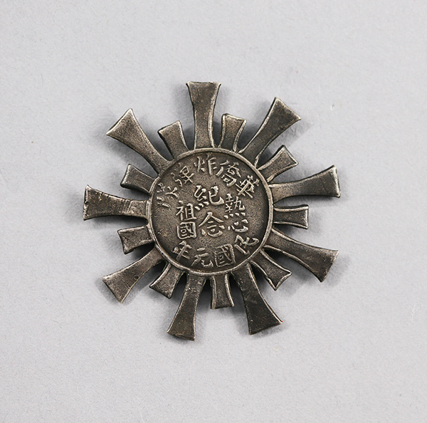 图为1912年华侨炸弹队“热心祖国”纪念章,直径4.5厘米,中国华侨历史博物馆藏