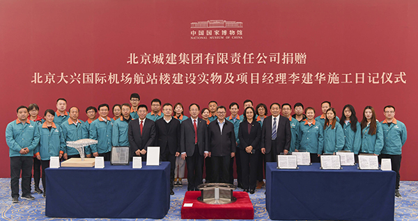 11月5日,北京城建集团有限责任公司向中国国家博物馆捐赠北京大兴国际机场航站楼建设实物及项目经理李建华施工日记,捐赠仪式在中国国家博物馆举行。中国国家博物馆馆长王春法和北京城建集团有限责任公司党委书记、董事长陈代华等相关领导出席仪式并讲话。