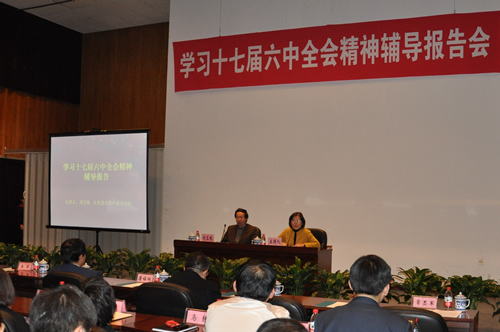 最后,常丕军指出,刘玉珠为我们作的六中全会精神辅导报告进一步加深了我们对文化产业及其发展规律的认识,这对我们更加深刻理解十七届六中全会精神具有重要的指导意义。