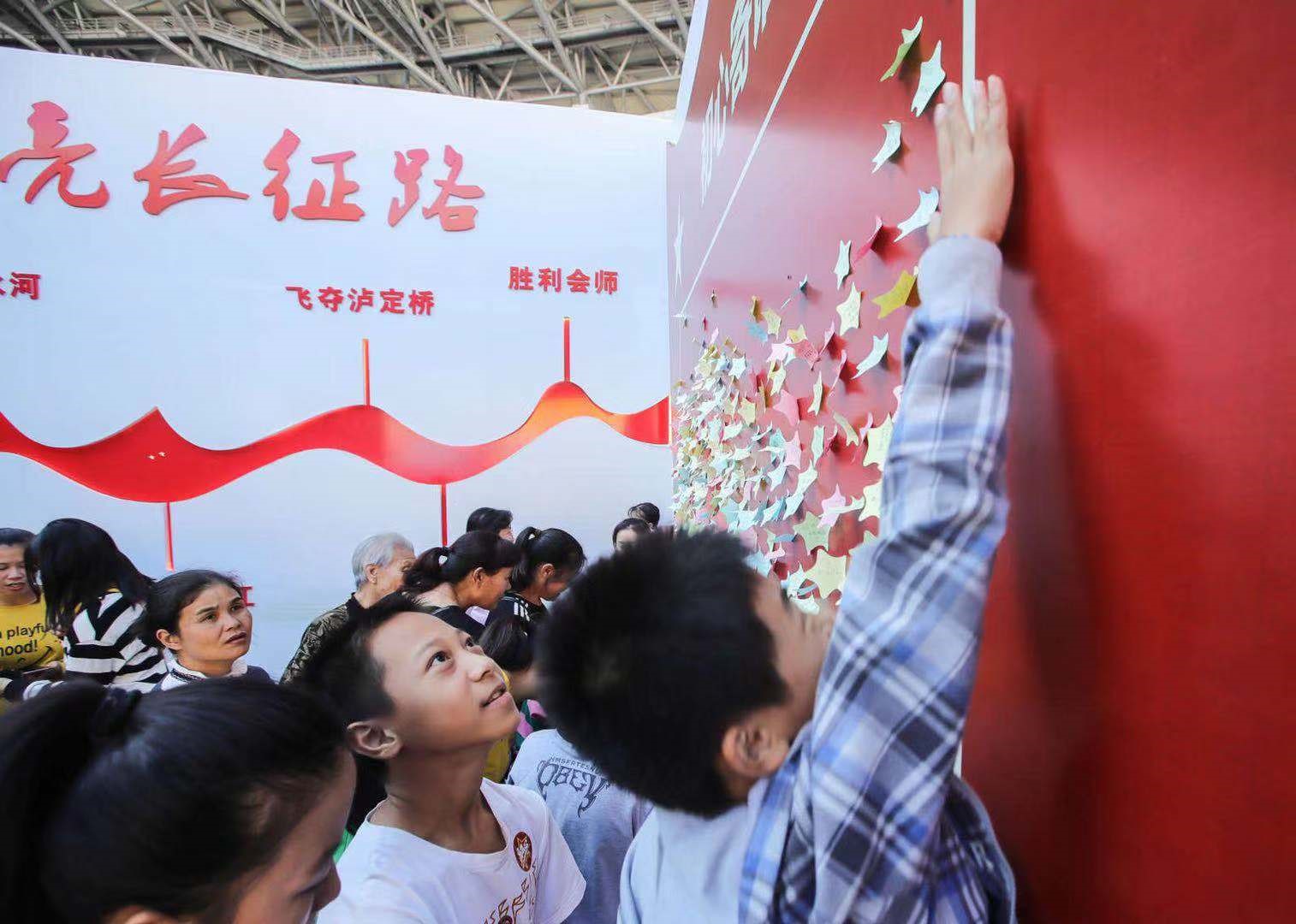 记者发现,在展馆内,参观者不仅能够实景体验爬雪山、过草地、飞夺泸定桥的艰险困苦,还能在“初心朗读亭”里留下自己的声音,更可以在“初心馆”主舞台上看到多位年轻艺人激情演绎爱国歌曲。