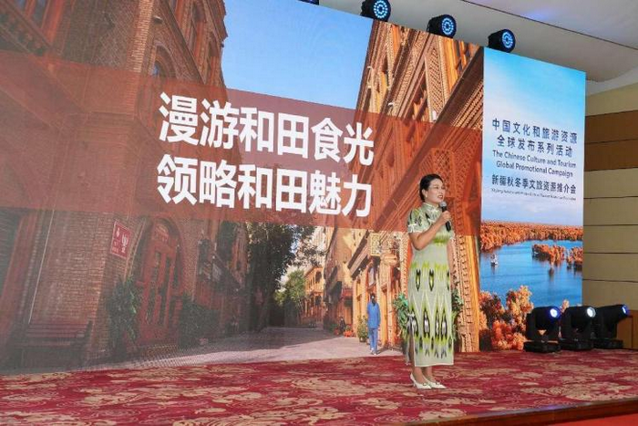 由文化和旅游部国际交流与合作局、新疆维吾尔自治区文化和旅游厅共同主办,中外文化交流中心承办的“中国文化和旅游资源全球发布系列活动之新疆秋冬季文旅资源推介会”于7月10日在文化和旅游部南区黄河厅举办。文化和旅游部国际交流与合作局局长高政、新疆维吾尔自治区文化和旅游厅副厅长刘全出席活动并致辞。