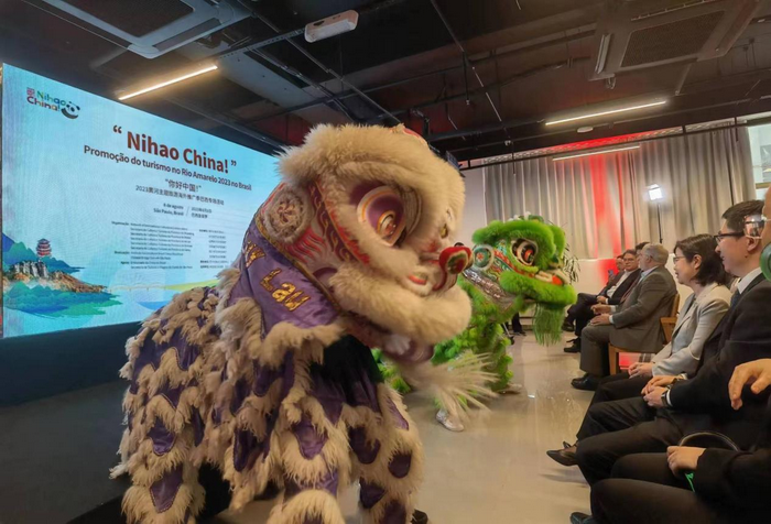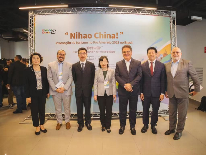 当地时间8月8日,由中外文化交流中心联合山东、山西、河南、四川、甘肃五省文化和旅游厅共同主办,中国驻巴西大使馆、中国驻圣保罗总领事馆和巴西圣保罗州旅游观光厅支持,巴中社会文化研究中心承办的“你好中国!”——2023黄河主题旅游海外推广季巴西专场活动在圣保罗成功举办。中国驻圣保罗总领事陈佩洁、中外文化交流中心副主任万铤、山东省文化和旅游厅副厅长孙蕾、圣保罗州旅游观光厅厅长卢塞纳、巴西前旅游部长伦默兹、巴中社会文化研究中心主席罗士豪等嘉宾出席活动并致辞。