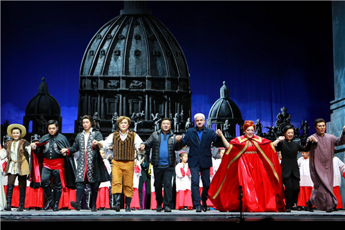 中央歌剧院为该剧的演出派出了高规格的演出阵容,由中央歌剧院院长俞峰担任艺术总监,特邀了中央音乐学院指挥系副系主任、杰出的指挥家陈琳教授担任指挥,还特地邀请了欧洲知名文化管理人,具有丰富歌剧导演经验的汉斯·约阿希姆·弗雷担任本剧导演。女主角特邀了旅意世界著名女高音歌唱家,北京大学歌剧研究院教授,拥有丰富普契尼女主角演绎经验的孙秀苇加盟,她和中央歌剧院青年女高音歌唱家郝菲分别饰演女主角托斯卡。男主角卡瓦拉多西由中央歌剧院著名男高音歌唱家王丰和剧院青年男高音歌唱家徐森分别担纲。中央歌剧院著名男中音歌唱家王海涛在剧中饰演斯卡尔皮亚。此外,剧院的一线歌唱家田浩、李想、苏雪冰、宋沣润、赵一峦、于海霞也在剧中扮演主要角色。
