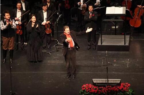 指挥家杨洋与《丑角》五位歌唱演员一起谢幕