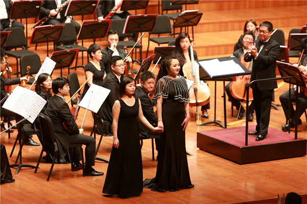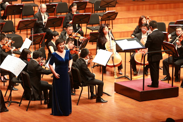 随后,中央歌剧院女高音歌唱家阮余群为观众献上了一组莫扎特的经文歌《欢乐颂》,演唱时而清澈明亮,时而平静安详,表达了对神灵的赞颂之情,将愉悦和欢乐带给了在座的观众。