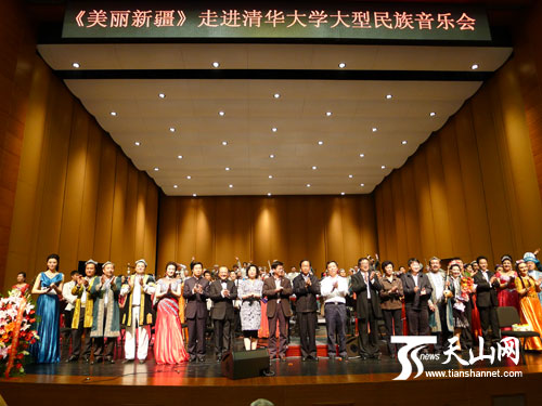 天行健,君子自强不息。5月3日,由中央民族乐团与新疆艺术剧院民族乐团共同打造的大型民族音乐会《美丽新疆》在北京清华大学新清华学堂完满收宫。最高人民检察院原检察长贾春旺、清华大学党委副书记邓卫、自治区党委副秘书长景海燕、艺术文化部艺术司副司长陶诚等领导同1800多名清华大学师生一起观看精彩演出。以“自强不息厚德载物”为校训的百年清华,在这场视听盛宴中见证、记录了中国民乐人自强不息的精神文化内涵,及执着于打造经典艺术的求索征程。