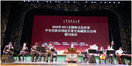 中央民族乐团通过精彩纷呈的文化扶贫方式,向当地群众宣传党的十九大精神,传递积极向上、勇于进取的正能量,将脱贫攻坚工作不断推向前进,助力该地文化繁荣,为建设美丽甘南藏族自治州贡献了力量。