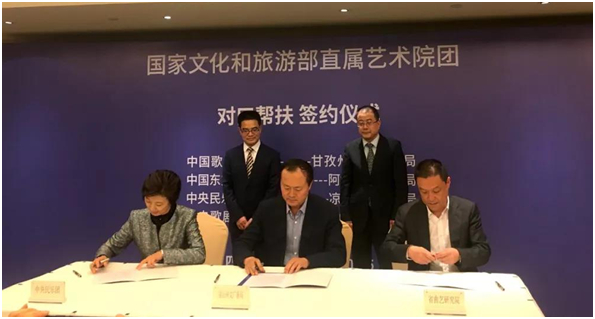 10月25日下午,文化和旅游部直属艺术院团对口帮扶四川甘孜阿坝凉山乐山艺术院团签约仪式在成都举行。中央民族乐团由副团长乔爱丽作为代表出席签约仪式。