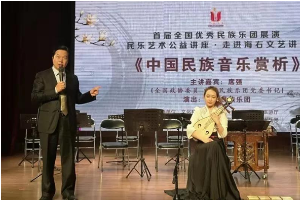 本次讲座的主题为《中国民族音乐赏析》,由全国政协委员、中央民族乐团党委书记席强主讲。谈到中国民族音乐,席强表示,民族音乐就是一个代表,一张名片,民族器乐的历史非常悠久,从古至今是一条漫长的发展之路。