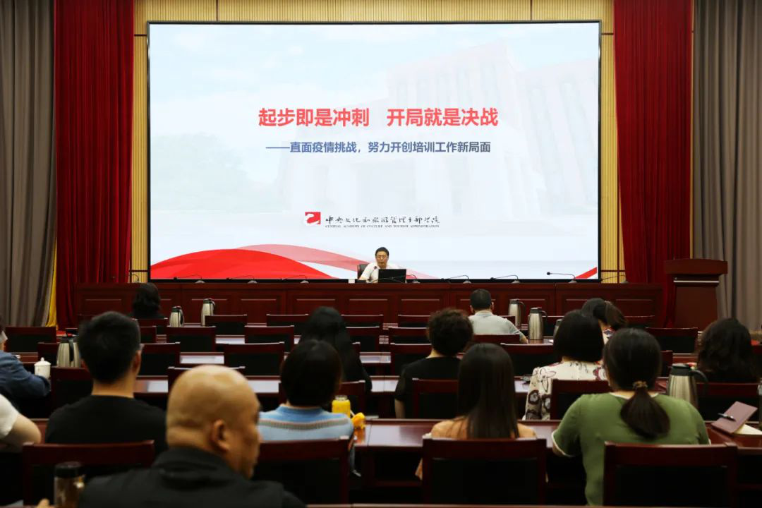 为深入学习贯彻习近平新时代中国特色社会主义思想,引导党员、干部深刻感受党和国家事业的新变化新面貌新气象,6月30日上午,中央文化和旅游管理干部学院院长周庆富以“起步即是冲刺 开局就是决战——直面疫情挑战、努力开创培训工作新局面”为题,为全院干部职工讲“七一”专题党课。