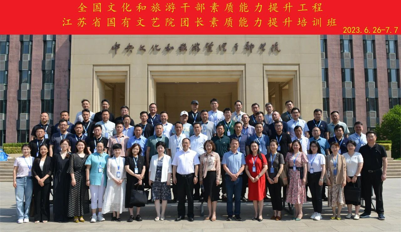 6月26日至7月7日,江苏省国有文艺院团长素质能力提升培训班在中央文化和旅游管理干部学院成功举办,来自江苏省演艺集团及13个市(县)的55位国有文艺院团长参加了培训学习。此培训班由江苏省文化和旅游厅与中央文化和旅游管理干部学院联合主办,并被纳入全国文化和旅游干部素质能力提升工程。