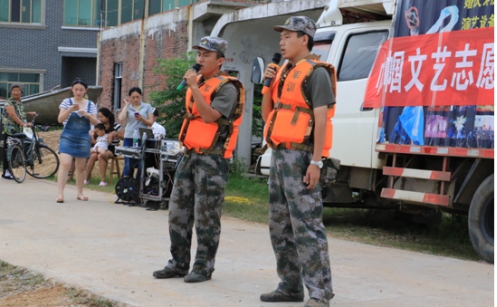 7月18日,6名巾帼文艺志愿者来到矶山联圩中坝,为奋战在防汛抗洪抢险一线的部队官兵开展慰问演出活动。她们自创歌曲,用甜美的歌声,表达家乡父老对人民子弟兵的深情厚谊。