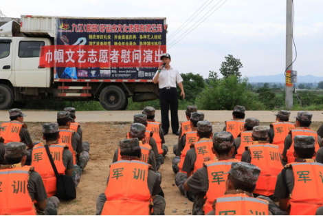 7月17日晚上,在九江市庐山区新港中学,由九江市庐山区委宣传部、庐山区文广新体局、庐山区新港镇人民政府主办了一场情系子弟兵,文化促双拥慰问武警水电部队抗洪武警官兵文艺演出,一曲《新港的夜晚》把演出的序幕拉开,晚会节目有舞蹈、独唱、合唱、武术等,给抗洪官兵带来了一次丰富多采的视觉大餐,武警官兵也上台为大家演唱了男声二重唱《国家》,同时表演了自编自导的抗洪节目,赢得了在场观众的一遍又一遍掌声。
