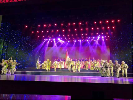在《红旗颂》辽阔悠远的旋律中,以《光辉的历程》为主题的晚会演出精彩纷呈,现场不时响起观众热烈的掌声。最后,文艺晚会在全体齐唱《没有共产党就没有新中国》嘹亮的歌声中落下帷幕。