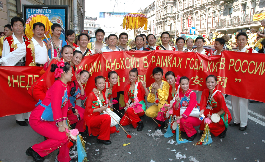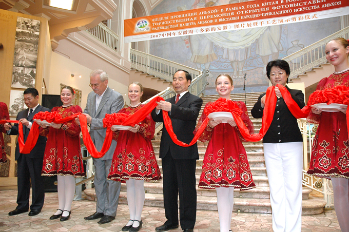 安徽省文化厅:5月28日,当地时间晚上7点,“2007中国年–安徽周”开幕式在俄罗斯圣彼得堡市十月大剧院隆重开幕。俄罗斯总统代表处、俄罗斯外交部代表处、列宁格勒州政府及外国驻圣领事馆官员和圣市文化、科技、旅游、企业各界人士以及华侨、华人共3000多人出席开幕式,省人大常委会副主任张春生,圣彼得堡立法会议副议长亚吉亚,中国驻圣彼得堡总领事田二龙分别发表了热情洋溢的致辞。