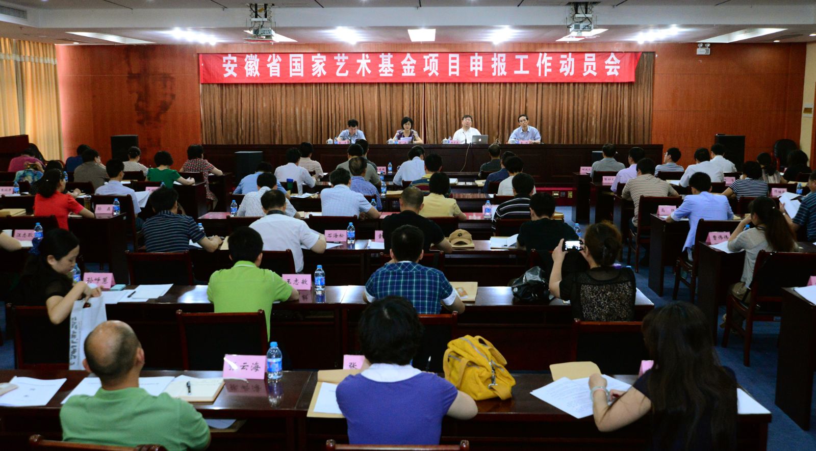 6月11日,安徽省文化厅在合肥召开国家艺术基金项目申报工作动员会。各市、省直管县文化主管部门分管局长、艺术科长,安徽演艺集团及省直院团、省文联及相关协会、省有关高校,省艺术研究院、省书画院等单位领导、代表参会。省文化厅厅长袁华作动员讲话,国家艺术基金管理中心主任韩子勇、副主任王勇作培训报告,会议由省文化厅副厅长唐跃主持。