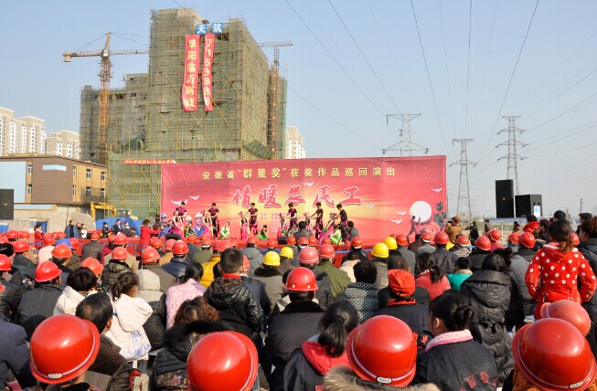 由安徽省文化厅主办,安徽省文化馆、全省文化馆活动联盟承办的安徽省群星奖获奖作品巡演——情暖农民工慰问演出,1月1日至3日,分别在安庆、阜阳、蚌埠进行了三场慰问演出。惠及农民工朋友达1400多人以及广大市民1万多人。