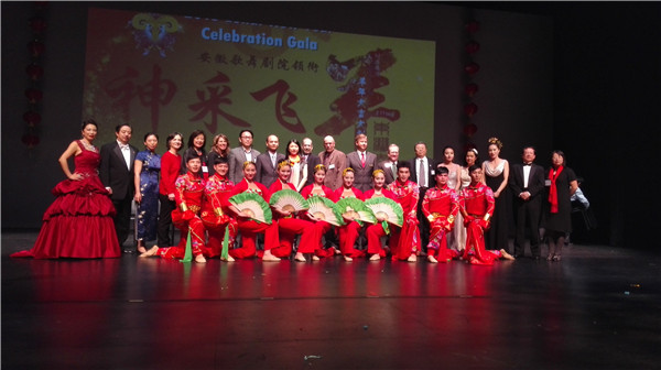 15日,安徽艺术团参加由美国华人舞蹈家协会、旧金山东湾农历新年庆委会共同举办的首届“神采飞羊——2015东湾春晚”,并与当地印度、印尼、韩国、日本等族裔及旅美艺术家们一道为观众带来一场具有较高艺术水准、体现当地多元文化融合,欢乐、喜庆的春节综艺晚会。