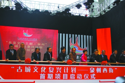 文化部副部长丁伟、福建省副省长李红、泉州市市委书记黄少萍等嘉宾共同推杆启动“古城文化复兴计划——泉州西街”首期项目