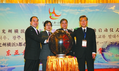 中韩日三国嘉宾共同启动泉州、光州、横滨三市新闻媒体交流互访活动