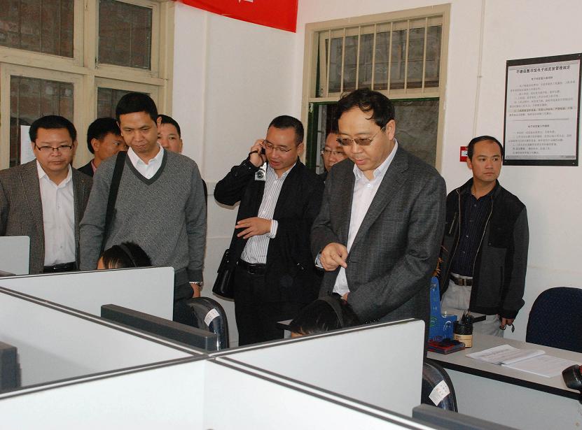 贵州省文化厅党组书记、厅长徐圻(前右一)察看平塘县图书馆工作开展情况