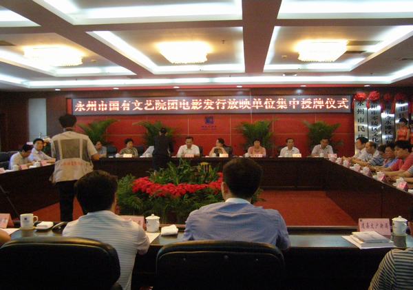 5月11日上午,湖南永州市委书记张硕辅,市委副书记、市长魏旋君在冷水滩为永州市民族歌舞剧团等14家国有文艺院团、电影发行放映改革单位集中授牌,这标志着该市已全面完成文化体制改革阶段性任务。