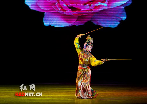 其中,为了展现湖湘戏曲文化的魅力,开幕式上长达30分钟的戏曲荟萃,重点展示了湖南花鼓戏、湘剧、祁剧、京剧等近年来获奖精品剧目选段,分别有京剧《潇湘梨园》、湘剧《李贞回乡》选段、花鼓戏《老表轶事》选段、祁剧《目连救母》选段。