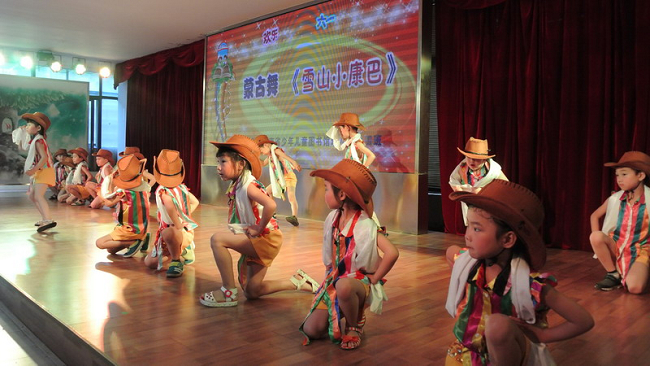 幼儿园的孩子们在表演蒙古舞蹈《雪山小康巴》