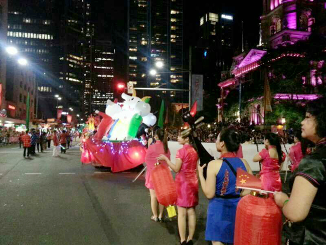 2月22日(农历正月初四)晚8点刚过,悉尼市政府举办的中国新年庆典花灯彩车大巡游活动正式拉开帷幕,悉尼大街小巷张灯结彩,人头攒动,同庆中国农历羊年新春。湖南省文化厅派出的访演团参加了此次盛大活动。