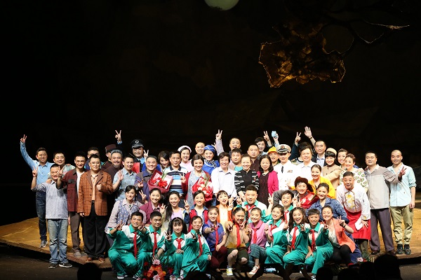 湖南省委宣传部巡视员魏委,省文化厅党组书记、厅长李晖,厅党组副书记、副厅长禹新荣与剧组演员合影