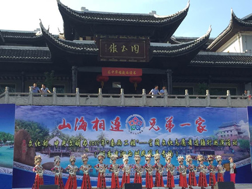 “春雨工程”全国文化志愿者边疆行巡演活动是由文化部、中央文明办从2011年起实施的一项重点文化惠民工程,这项工程以满足边疆民族地区群众精神文化需求为主要任务,以文化志愿者为骨干力量,为边疆民族地区群众提供文化志愿服务,搭建内地与边疆文化交流的平台。今年湘西州代表湖南省,承接了2015年全国文化志愿者边疆行巡演活动。参加此次赴湘巡演的27名文化志愿者由海南省派出,在接下来的一周里,他们将与湘西州的文化志愿者积极交流,并共同走进永顺县和龙山县进行巡演。