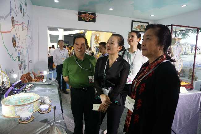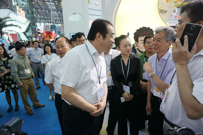 湖南省文化厅厅长李晖、副厅长肖凌之参观展位