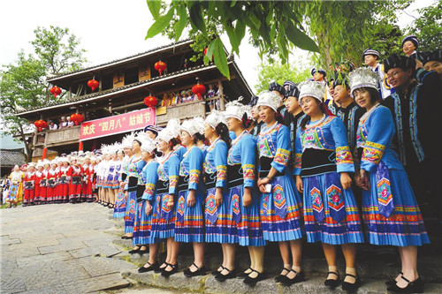 满城共醉黄桑歌,相约苗家四月八。今日的湖南省邵阳市绥宁县民族体育广场歌舞升平,人声鼎沸。2015年中国邵阳绥宁苗族四月八姑娘节开幕式暨民俗展演在这里隆重举行。