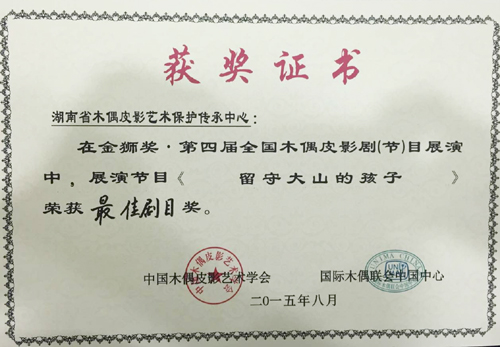 湖南大型原创木偶剧《留守大山的孩子》荣获第四届全国木偶皮影剧展演最高奖 “最佳剧目奖”