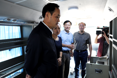 湖南省委常委、省委宣传部长张文雄参观流动图书车