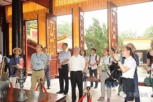 “惟楚有材,于斯为盛”,悬挂在书院大门两旁的这副对联,深深吸引住大家驻足观赏。嘉宾们认真听着解说员的讲解,仔细看着这里的每一处古迹。一路走来、一路看来、一路想来,他们对灿烂的湖湘文化表现出浓厚的兴趣,纷纷感叹岳麓书院虽历经千年,保存之完好,这里的碑文、纪念馆、陈列室都是历史的见证。