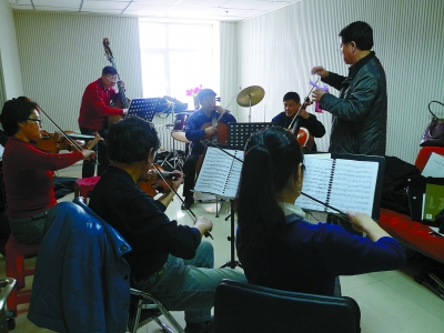 吉林省长春市绿园区居民在装修一新的绿园区文化大厦排练室里排练节目。李 蕾 摄