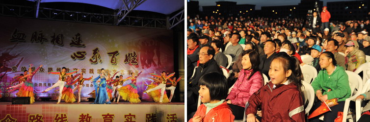 4月18日晚,由辽宁省委党的群众路线教育实践活动领导小组办公室、辽宁省文化厅主办,辽宁省群众艺术馆、沈阳市文广新局、沈阳市苏家屯区文体广新局承办的“血脉相连 心系百姓”党的群众路线教育实践活动文艺演出在苏家屯区雪松体育场激情上演,2000多观众现场观看演出。