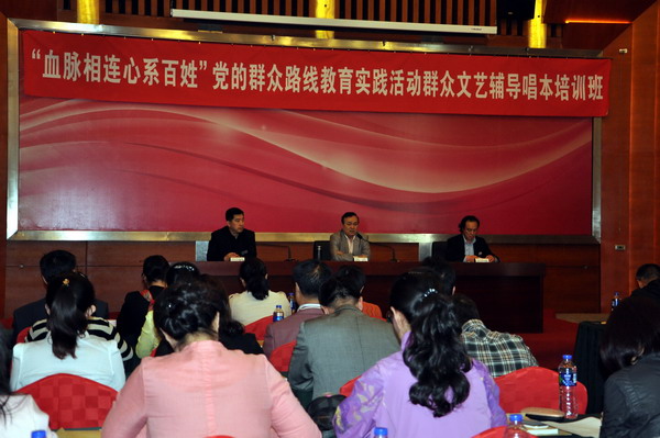 为贯彻落实辽宁省省委教育实践活动领导小组办公室关于开展“血脉相连、心系百姓”群众性文艺演唱活动的部署和要求,4月28日至29日,由省文化厅组织、省群众艺术馆承办的“血脉相连、心系百姓”党的群众路线教育实践活动群众文艺辅导唱本培训班在辽宁大剧院举办。来自全省各市及绥中、昌图县的业务馆长、文艺骨干40余人参加了培训。