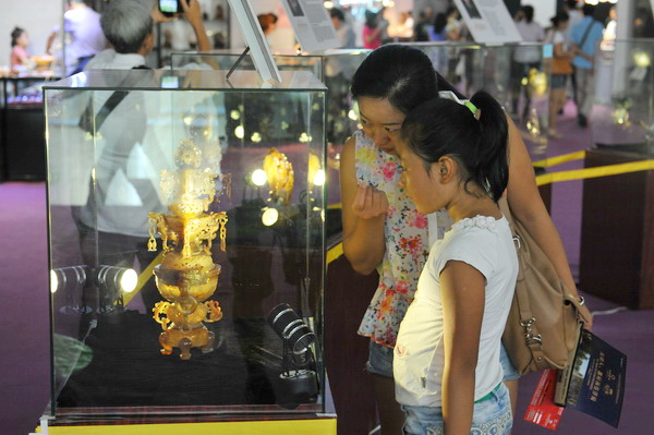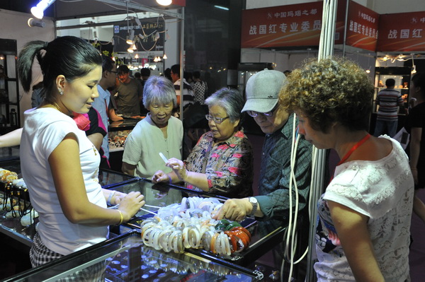 “一年一主题”,重点展示“辽宁八宝”。自2011年始,在省文化厅的支持下,为推动辽宁省特色文化产业发展,组委会提出了“辽宁八宝”的概念,经过三年的发展,“辽宁八宝”已然成为辽宁特色文化产品的符号。自本届开始,组委会以“一年一主题”的形式,每年推出“辽宁八宝”中的一个品类,逐一重点展示和推广。本届定为“阜新玛瑙主题年”,阜新市政府精心组织了大师级玛瑙作品前来参展。希望通过主题年活动的不断深化,让“辽宁八宝”代表辽宁文化特色走向全国、走向世界。