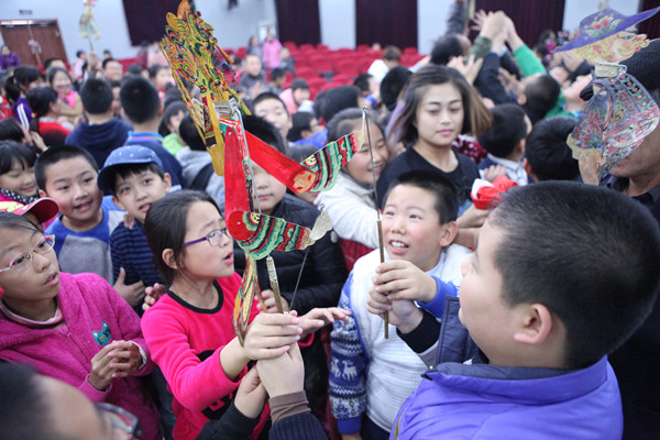 在互动环节,学生们尝试操影技艺