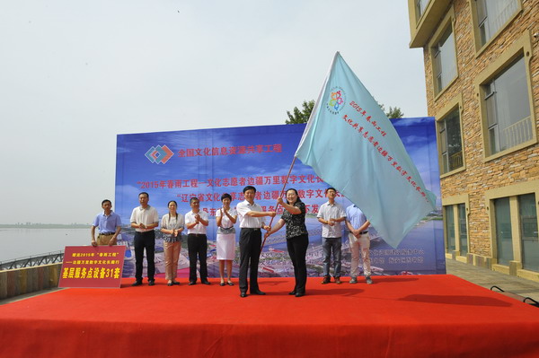 按照文化部全国公共文化发展中心“2015年春雨工程——文化志愿者边疆万里数字文化长廊行”活动总体安排,6月25日,“文化志愿者边疆万里数字文化长廊行”旗帜交接仪式暨“辽宁省文化共享志愿者边疆万里数字文化长廊行”丹东市乡镇村级服务点设备下发仪式在丹东举行。文化共享工程辽宁省分中心、吉林省分中心,丹东市文广局负责人和文化志愿者代表参加仪式。