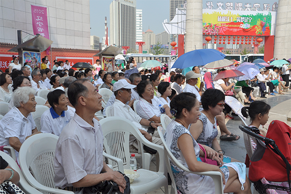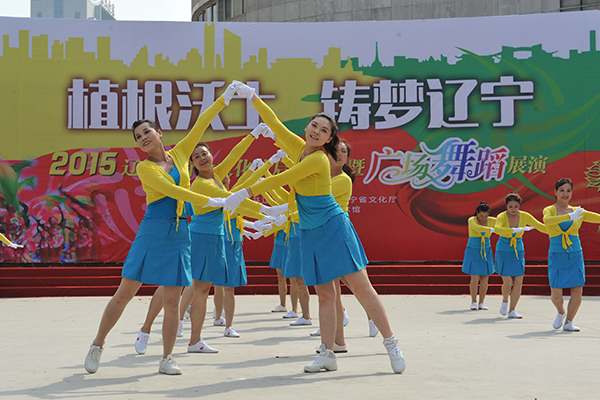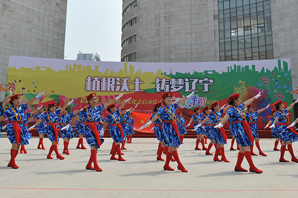 威风锣鼓、蒙古贞安代舞、盘锦高跷秧歌等热场表演,向观众们展示具有辽宁地域特色的民俗民间舞蹈风采,点燃了现场的火热气氛。启动仪式后,进行了广场舞蹈展演第一场演出,《学习雷锋》展现了广场舞正能量的新曲风,《我们走在大路上》带给观众火热的激情,《关东乡音》舞出了浓郁的地域文化丰采,《喜悦》展现了少数民族群众对幸福的独特表达,《走向复兴》表达了广大群众对伟大中国梦的热切期盼……场上舞蹈欢快祥和,观众掌声火爆热烈,辽宁大剧院广场成为了群众文化欢乐的海洋。