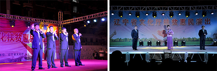 为全面贯彻习近平总书记扶贫开发的战略思想,落实全省扶贫攻坚动员电视电话会议精神,辽宁省文化厅高度重视,坚持文化扶贫先行,及早部署、迅速行动,由文化厅党组成员、副厅长杨世涛带队,组成30余人的文化扶贫工作团队,于9月10日至9月21日行程2000余公里,深入建昌、北票、义县、彰武贫困偏远地区,为当地群众送来文艺演出、机顶盒培训、图书流动、广场舞培训等多个扶贫项目。这次扶贫活动,以“文化扶贫,文化惠民”为主题,不仅送文化活动,也送去了精神和力量,受到当地基层文化干部和群众的欢迎。