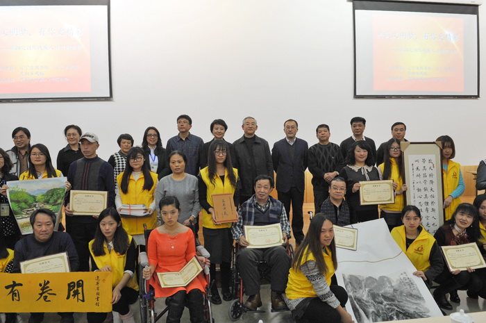 活动现场,残疾人朋友进行了诗歌朗诵、陶笛演奏、书画表演、歌舞演出等才艺展示,展现了残疾人文艺风采。残疾人代表将凝聚心血的文学作品和书法绘画艺术作品捐赠辽图收藏。整个活动过程,气氛热烈而温馨,在朔风飞雪的寒冬,每一个到场的残疾人都感受到了炙热的温暖和爱心。活动中,70名来自沈阳市内各区的残疾人写作、书法、摄影和绘画爱好者和30名辽图文化助残志愿者,参观了辽图新馆24小时自助图书馆、新书坊、特殊群体服务中心以及展览展示厅,了解为残疾人读者提供的各项服务内容。