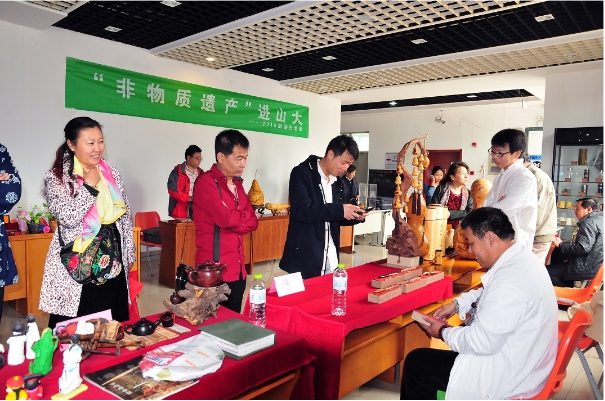 5月15日,由济南市文广新局、市群众艺术馆、市非物质文化遗产保护中心组织的“非遗进校园”活动在山东大学中心校区大学生活动中心举行,济南市20余位非遗传承人现场展示、讲解、传授非遗知识与制作技艺。