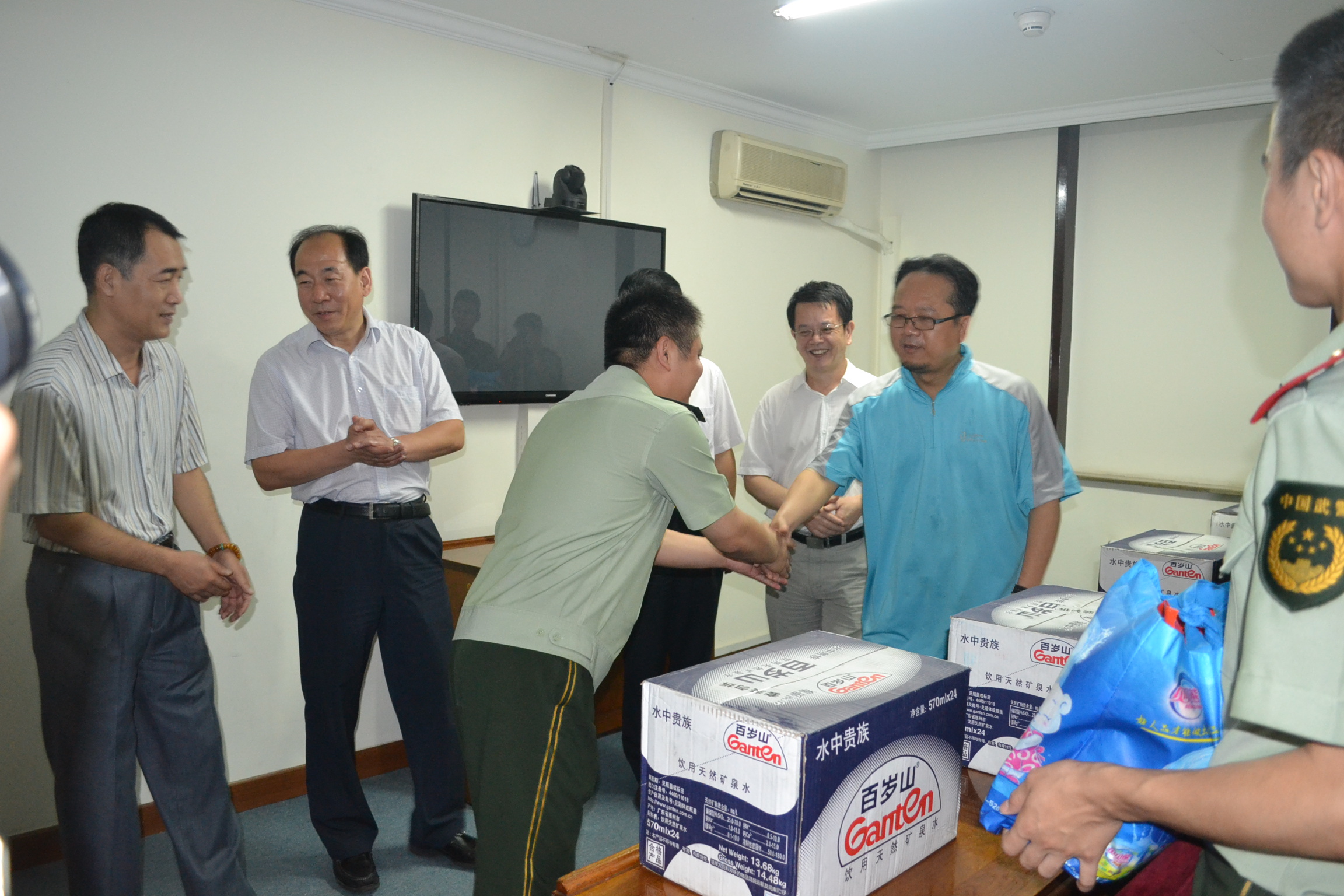 8月1日上午,办公厅副主任、机关服务局局长都海江,机关服务局副局长步士忠,文化部信息中心主任洪永平,中外文化交流中心副主任马达,来到驻文化部武警十一支队十七中队看望慰问武警官兵。