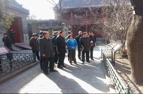 3月3日下午,东城区委书记杨柳荫,区委常委、区委办公室主任毛炯,区委常委、副区长陈之常,副区长王晨阳一行来到柏林寺,参观寺内文物古建,并就周边环境整治同机关服务局党委书记姚家华、副局长焦长华进行座谈。