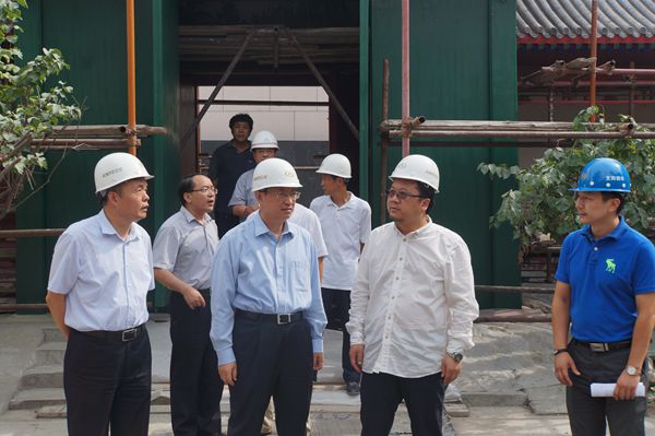 树刚同志一行首先查勘了正在维修中的孑民堂。孑民堂原为清乾隆朝大学士傅恒宅第;民国初并入北京大学,1947年北京大学为纪念蔡元培,将宅第西厢院改成“孑民纪念堂”;1995年被列为北京市文物保护单位。树刚同志现场听取了施工进展情况汇报,强调指出:要充分挖掘古建筑原貌,真正做到修旧如旧;在具体施工中,要严格遵循“时间服从于质量”的原则,确保工程质量过硬。
