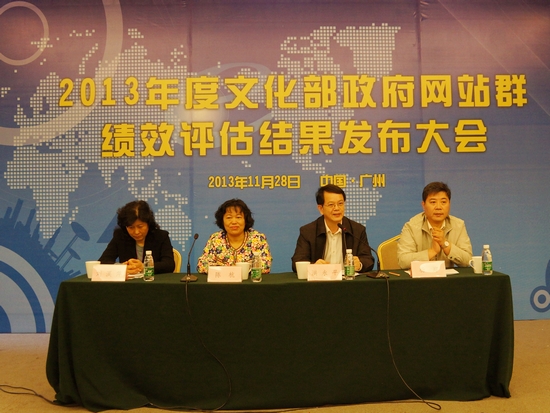 为进一步做好文化部政府网站群建设工作,11月28-29日,由文化部办公厅、文化部信息化工作领导小组办公室主办,文化部信息中心、广东省文化厅承办的2013年度文化部政府网站群绩效评估结果发布大会在广州召开。山东省文化厅等26个文化部政府网站建设先进单位获得表彰。文化部信息化工作领导小组办公室、文化部信息中心主任洪永平,文化部信息化工作领导小组办公室、文化部信息中心副主任杨郑,广东省文化厅副厅长陈杭及文化部政府网站群建设单位代表共100多人参加了会议。